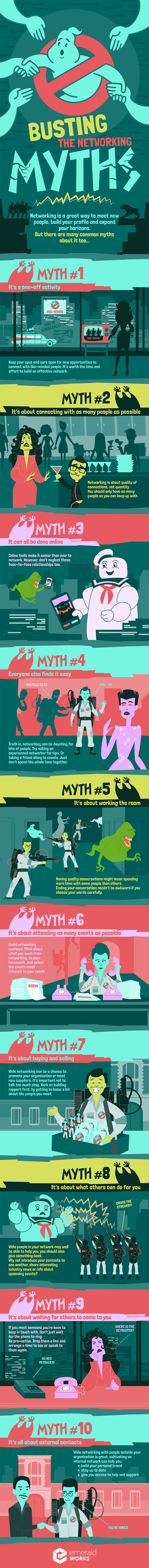 Transcript. Busting the Networking Myths. Networking is a great way to meet new people, build your profile and expand horizons. But there are many common myths about it too. Myth 1. It’s a one-off activity. Keep your eyes and ears open for new opportunities to connect with like-minded people. It takes time and effort to build an effective network. Myth Two. It’s about connecting with as many people as possible. Networking is about quality of connections, not quantity. You should only have as many people as you can keep up with. Myth Three. It can all be done online. Online tools make it easier than ever to network. However, don’t neglect those face-to-face relationships too. Myth Four. Everyone else finds it easy. Truth is, networking can be daunting for lots of people. Try asking an experienced networker for tips. Or taking a friend along to events. Just don’t spend the whole time together. Myth Five. It’s about working the room. Having quality conversations might mean spending more time with some people than others. Ending your conversation needn’t be awkward if you choose your words carefully. Myth Six. It’s about attending as many events as possible. Avoid networking overload. Think about what you want from networking, do your homework, and select the events most relevant to your needs. Myth Seven. It’s about buying and selling. While networking can be a chance to promote your organisation or meet new suppliers, it’s important not to talk too much shop. Work on building rapport first, by getting to know a bit about the people you meet. Myth Eight. It’s about what others can do for you. While people in your network may well be able to help you, you should also give something back. Why not introduce your contacts to one another, share interesting industry news or info about upcoming events. Myth Nine. It’s about waiting for others to come to you. If you meet someone, you’re keen to keep in touch with, don’t just wait for the phone to ring. Be pro-active. Drop them a line and arrange a time to see or speak to them again. Myth Ten. It’s all about external contacts. While networking with people outside your organisation is great, cultivating an internal network can help you. build your personal brand. stay up to date. give you access to help and support.